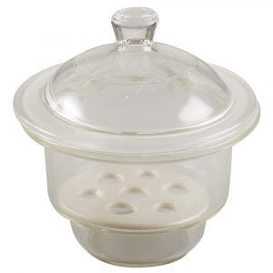 Recipiente fabricado de vidrio muy grueso con tapa que se adapta ajustadamente y en su interior tiene una placa desecante de metal o porcelana. El borde de vidrio es esmerilado y su tapa permite que el recipiente este herméticamente cerrado principalmente para eliminar la humedad o deshidratar  una sustancia, o proteger la misma de la humedad.